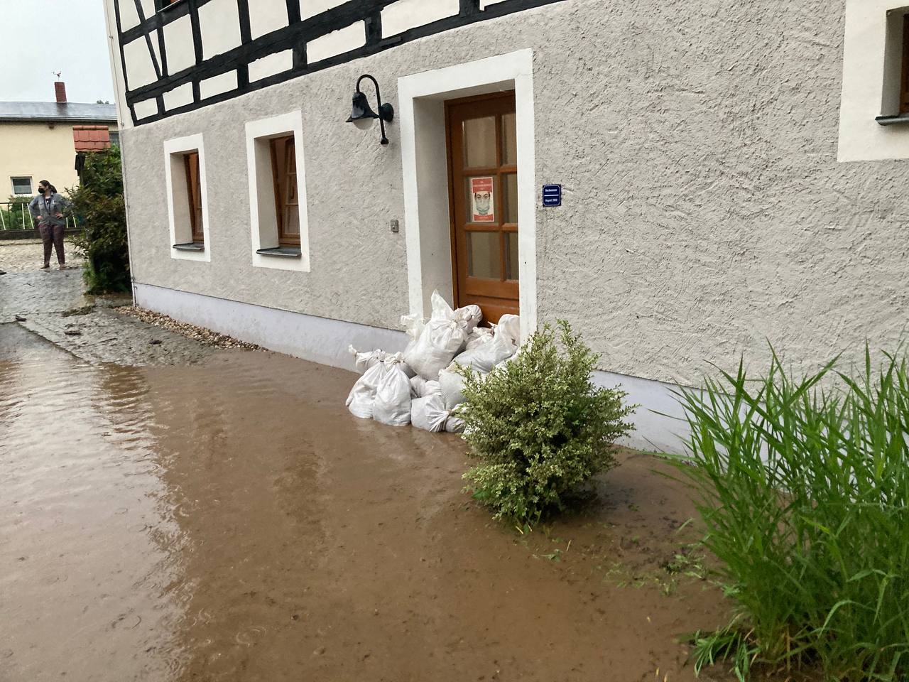 Nachdem wir das Haus für unsere Gäste nach einer langen Coronapause wieder öffnen dürfen, kommt das Hochwasser als Herausforderung nach Höfgen zurück. Am Sonnabend, dem 5.6.2021 ist eine sehr starke Gewitterfront über Höfgen gezogen und hat den kleinen Dorfbach zu einem reißenden Strom verwandelt. Das Wasser ging durch das Grundstück des Freizeit- und Pfadfinderheims Höfgen und die Wiesen wurden überflutet. Der Schaden beläuft sich zum Glück auf wenige tausend Euro. Wegflächen sind zu erneuern, Ausspülungen zu beseitigen und Unrat und Schlamm zu entfernen. Ein ganz großer Dank geht an die Fluthelfer*innen (Kursteilnehmer*innen) des VCP Land Mitteldeutschland und an das VCP Land Sachsen. Durch die schnelle Hilfe konnte ein größerer Schaden vermieten werden.